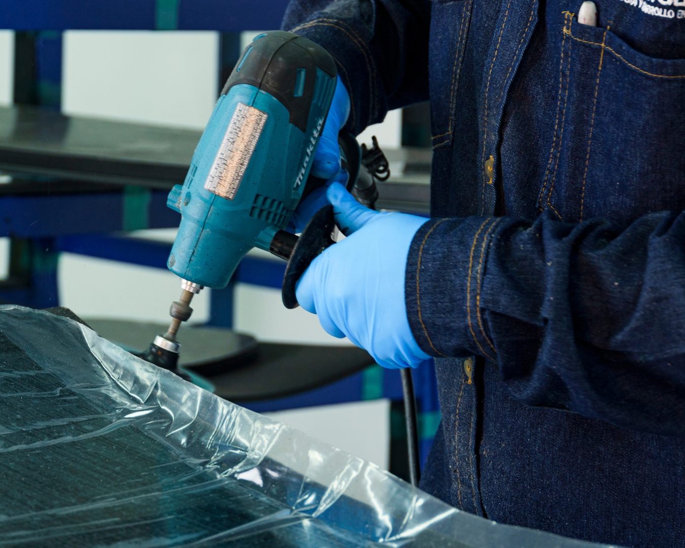 Tecnología especializada para recuperar vidrios delaminados mediante reintegración de capas bajo proceso industrial controlado.